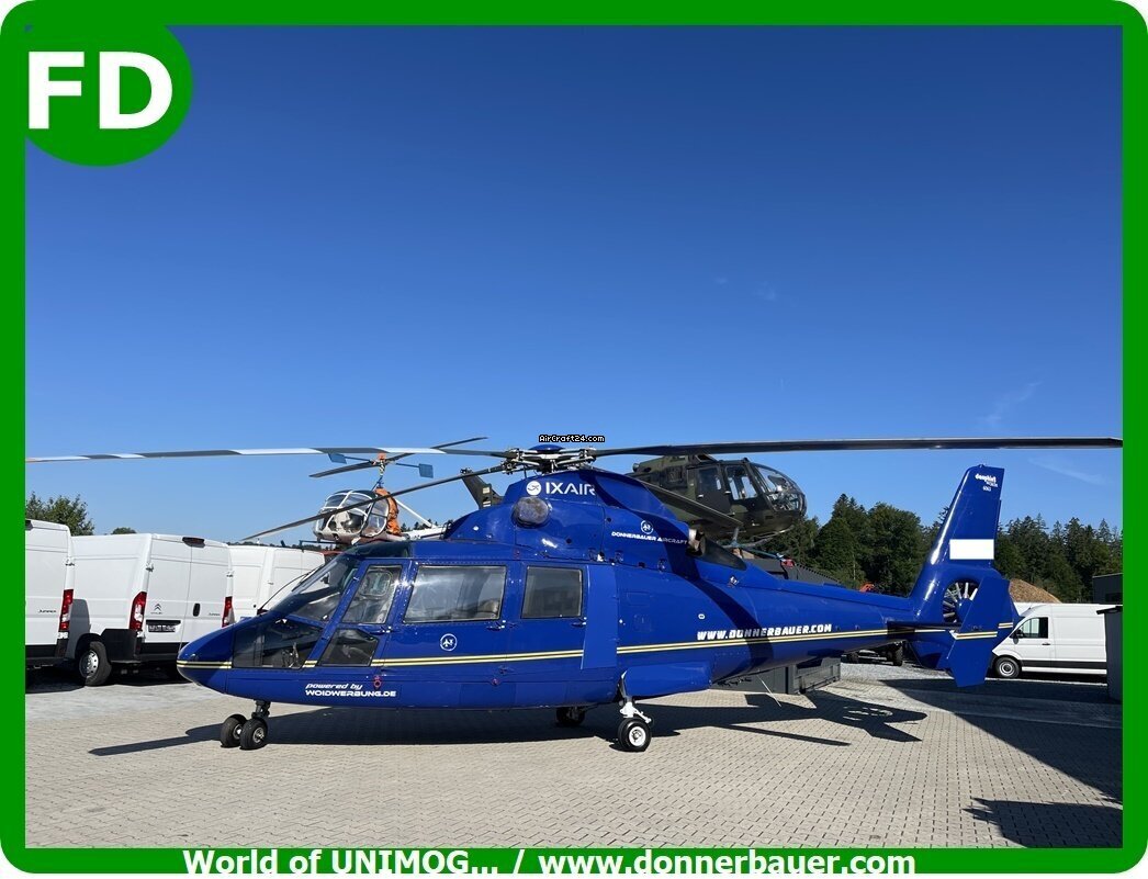 | Base data | | Type: | Helicopter (Turbine) | | Make: | Eurocopter | | Model: | AS 365 Dauphin , für Schulung , Deko | | Year built: | 2000 | | Location: | Germany, Hinterschmiding | | Total Time (TTAF): | 123456 h | | Price: | € 139.000 | | VAT stated sep.: | no |