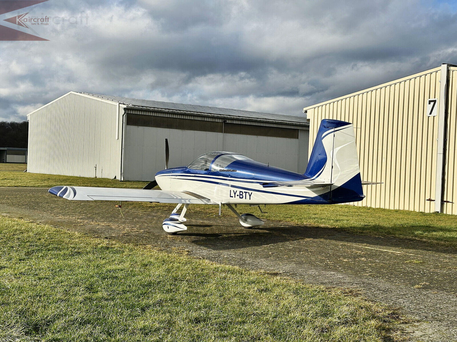 | Base data | | Type: | Single Prop | | Make: | Vans | | Model: | RV-7A | | Year built: | 2011 | | Registration No.: | LY-BYT | | Serial No.: | 73208 | | Attributes: | Always hangared | | Last annual: | 11/2025 | | Location: | Germany | | Total Time (TTAF): | 165 h | | Price: | € 145.000 | | EU VAT paid: | no | | VAT stated sep.: | no |