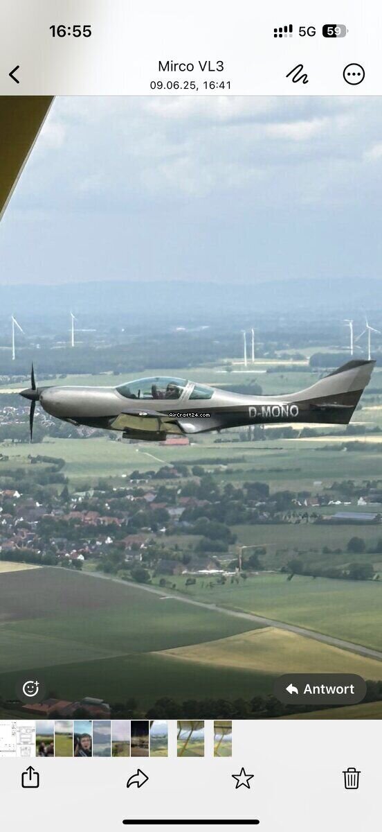 | Base data | | Type: | Single Prop | | Special Type: | Light Sport Aircraft | | Make: | JMB Aircraft | | Model: | VL3 916iS | | Year built: | 2024 | | Serial No.: | 608 | | Attributes: | Always hangared | | Last annual: | 9/2025 | | Location: | Germany, Oerlinghausen, EDLO | | Total Time (TTAF): | 197 h | | Price: | € 329.000 | | No. of passengers: | 2 |