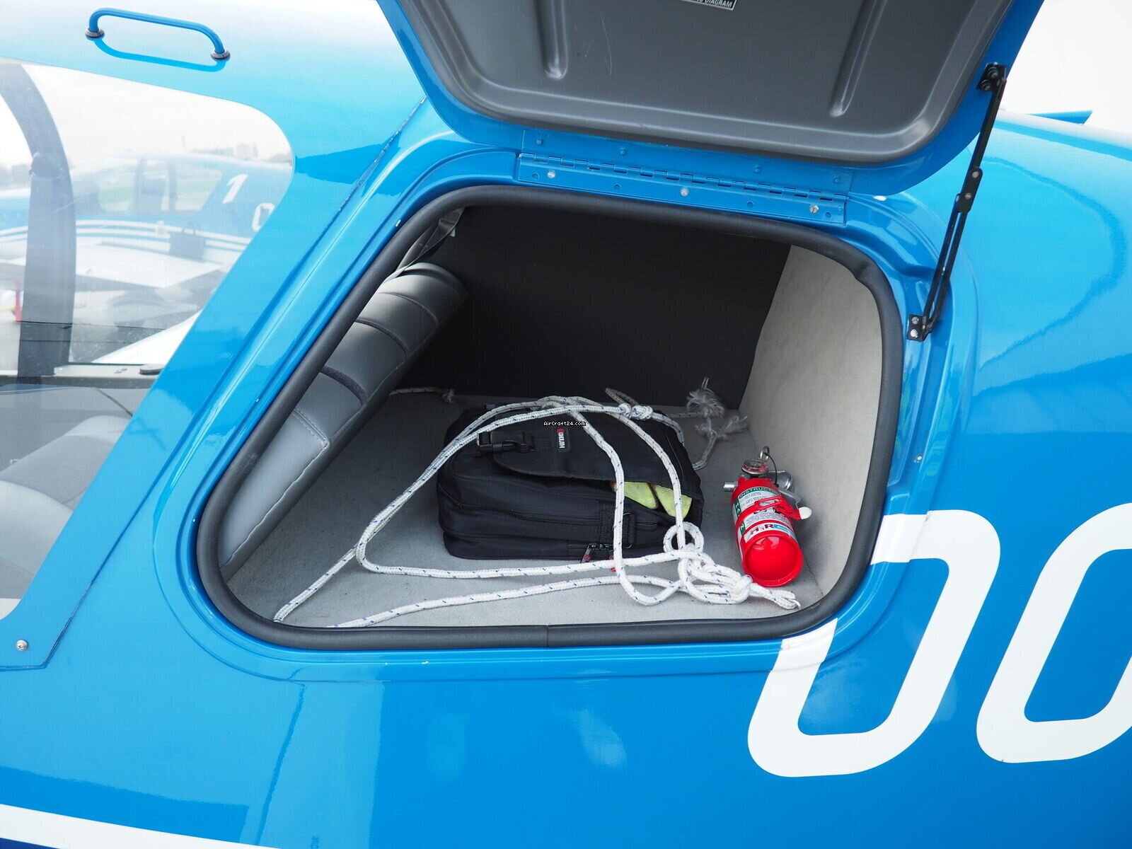 | Exterior | | Finished in a stunning electric blue over crisp white, this aircraft commands attention on any ramp. The dynamic "S-curve" striping emphasizes the sleek lines of the modern DR-400 fuselage |